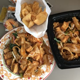 Choice of vegetarian chicken or Vegan chicken Choice of egg lo mein noodles for vegetarian or rice noodles for Vegan
